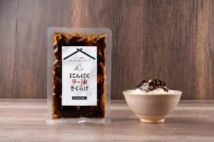 きくらげ(国産)、醤油、食用なたね油、砂糖、食用ごま油、豆板醬、フライドガーリック、食塩、醗酵調味料、唐辛子、フライドオニオン、香辛料/調味料(アミノ酸)、増粘剤(キサンタンガム)、酸味料、酸化防止剤(V.E)、(一部に小麦・大豆・ごまを含む)
